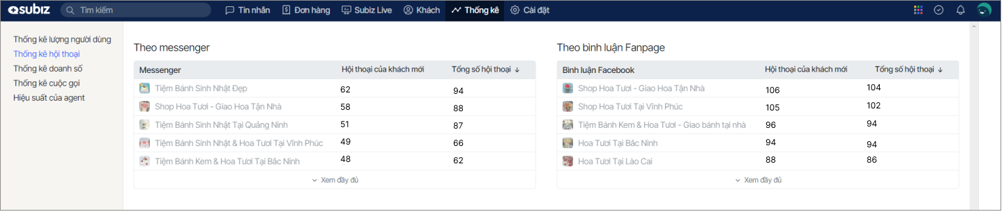 Báo cáo chi tiết: Thống kê hiệu suất, nguồn khách hàng và doanh số từ từng Fanpage.