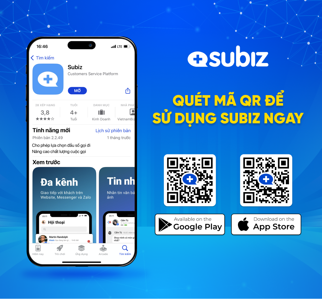 Bạn tải app Subiz về điện thoại bằng cách quét mã QR sau.