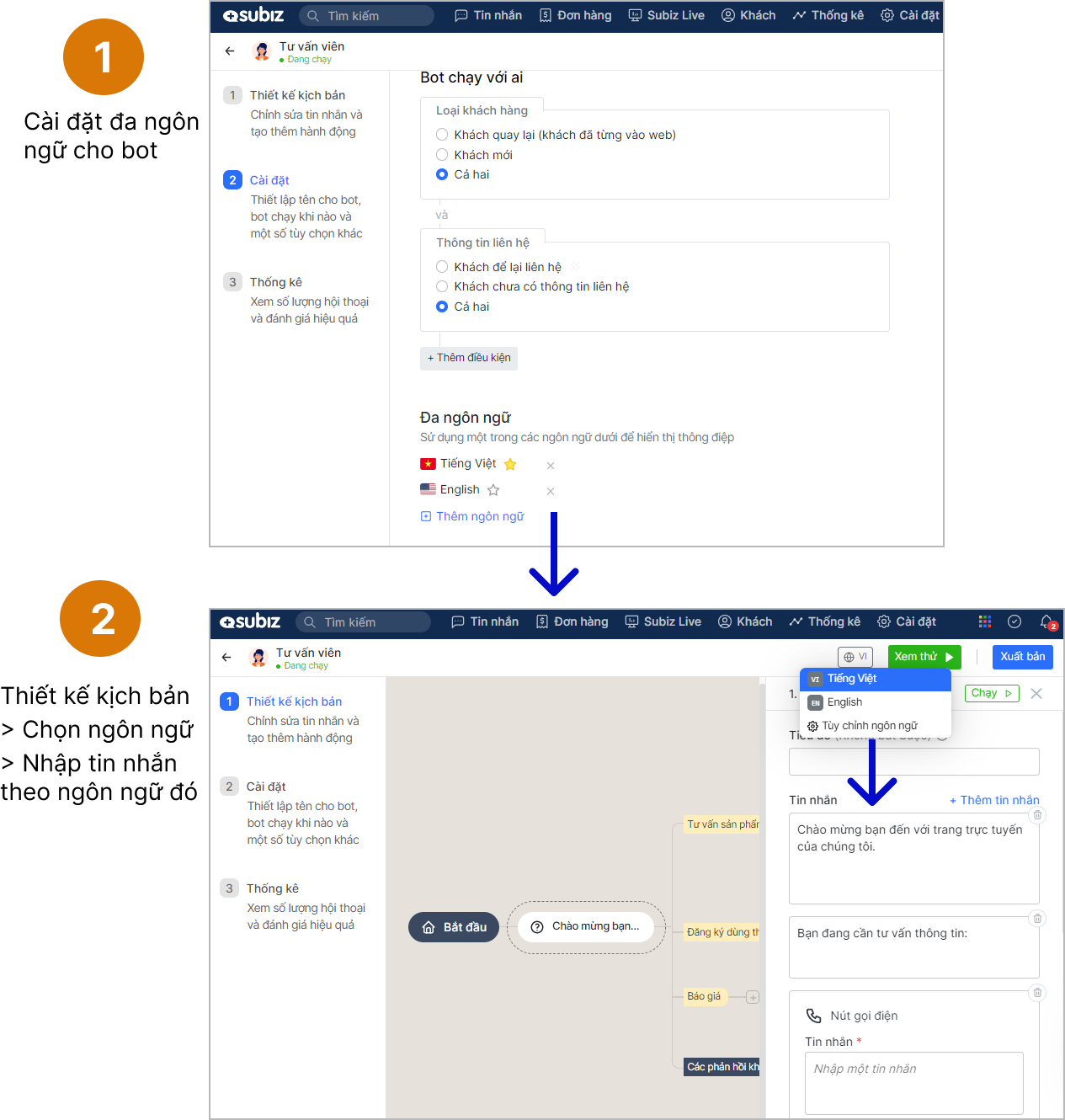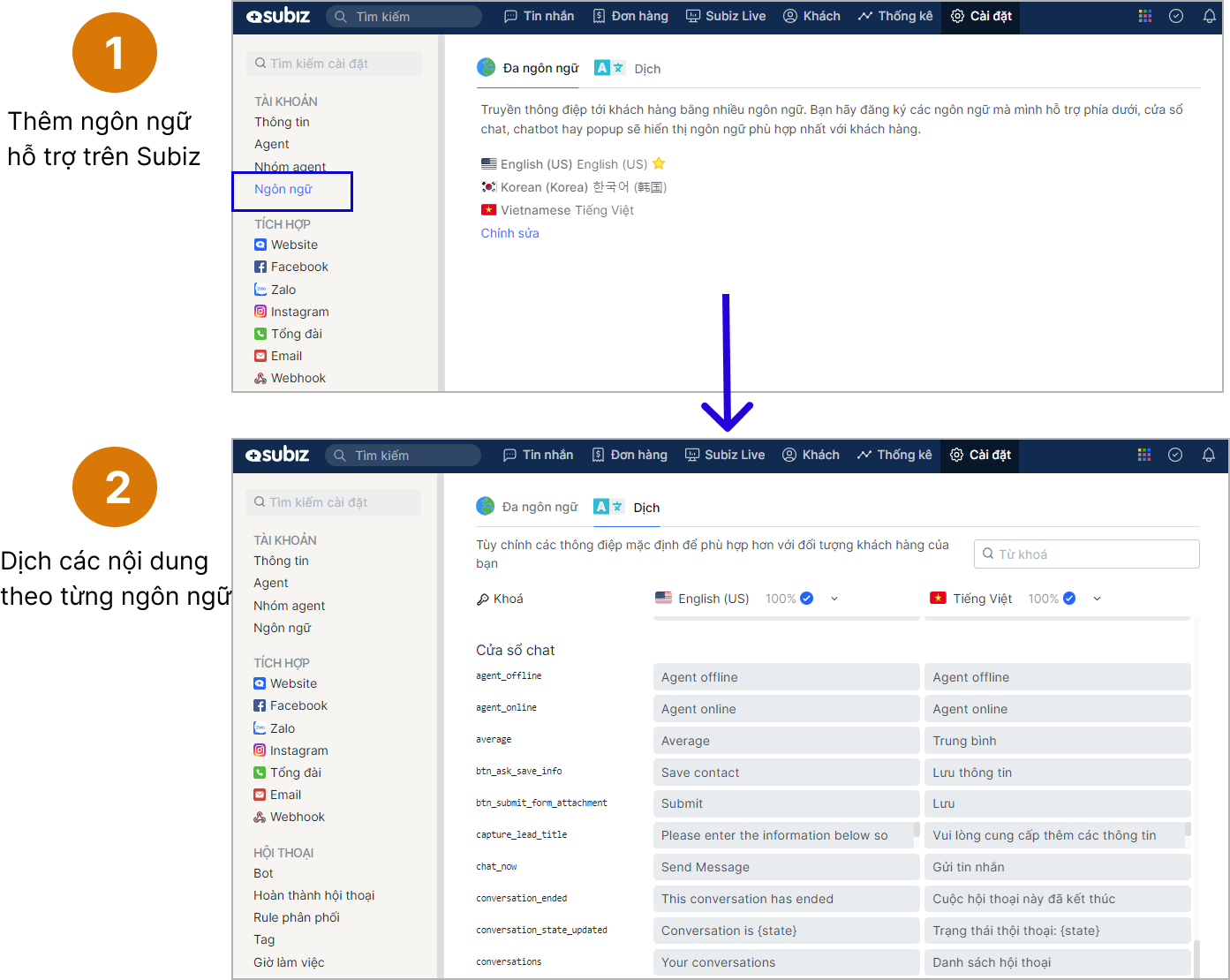 Hướng dẫn thêm ngôn ngữ vào Subiz: