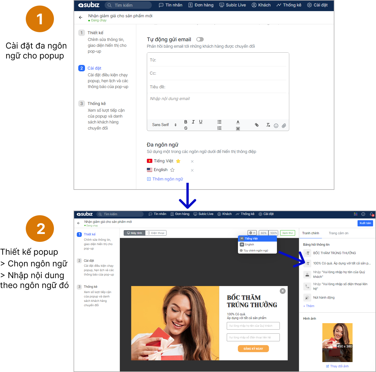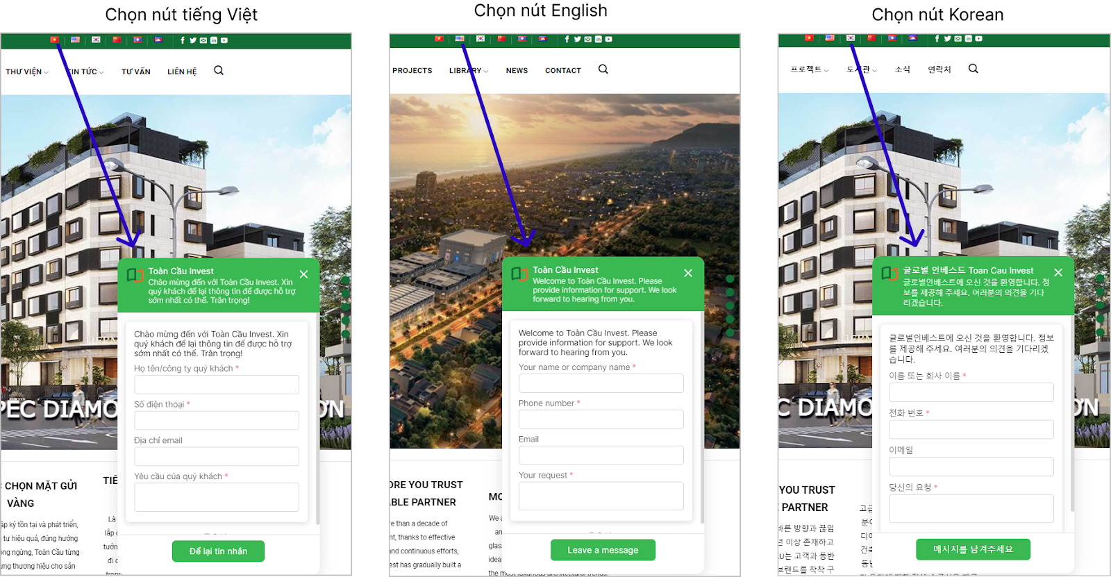 Hướng dẫn cài đặt popup gửi tin nhắn đa ngôn ngữ: