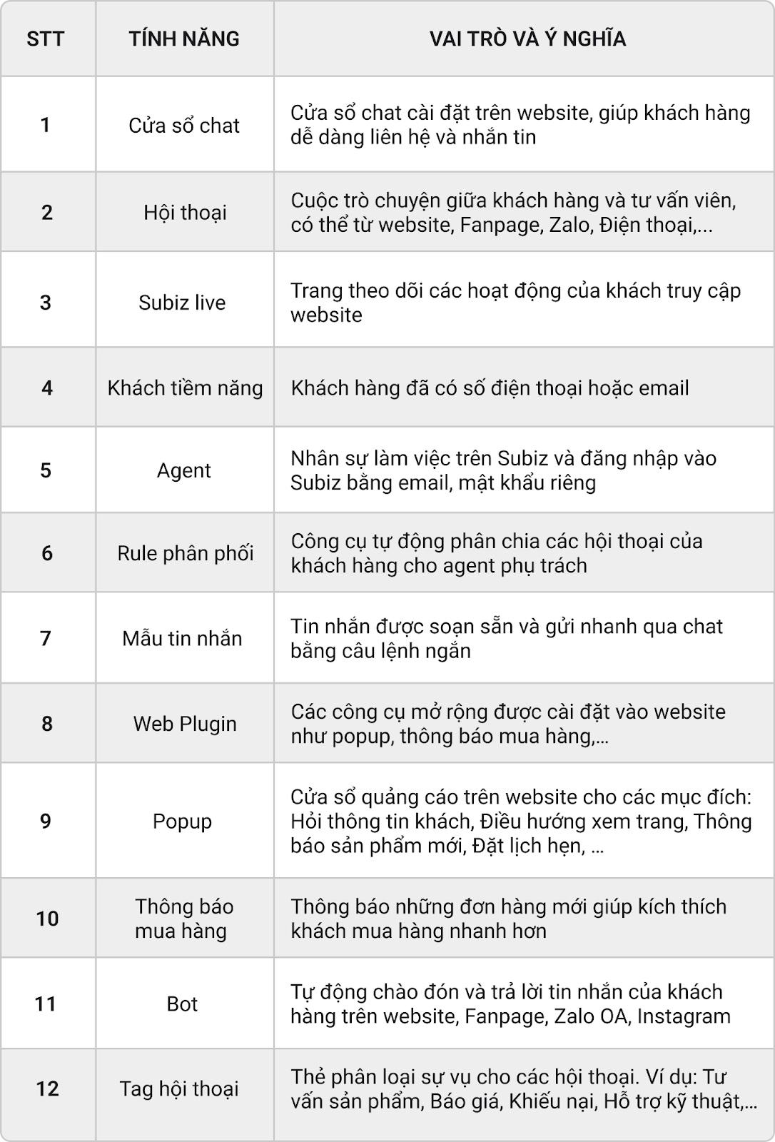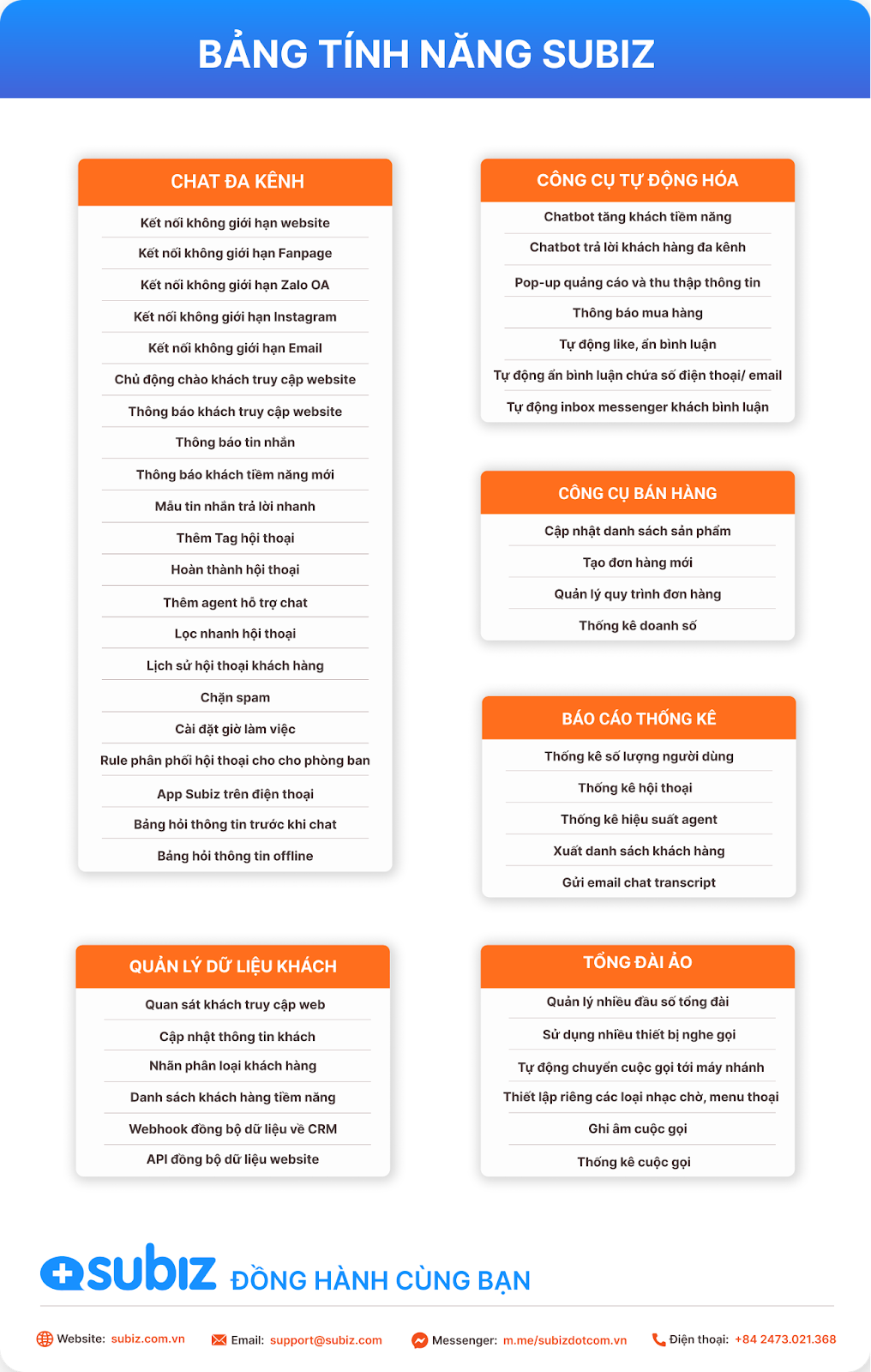 Các tính năng Subiz được thiết kế để phù hợp với mục tiêu kinh doanh của doanh nghiệp trong nhiều ngành nghề khác nhau.