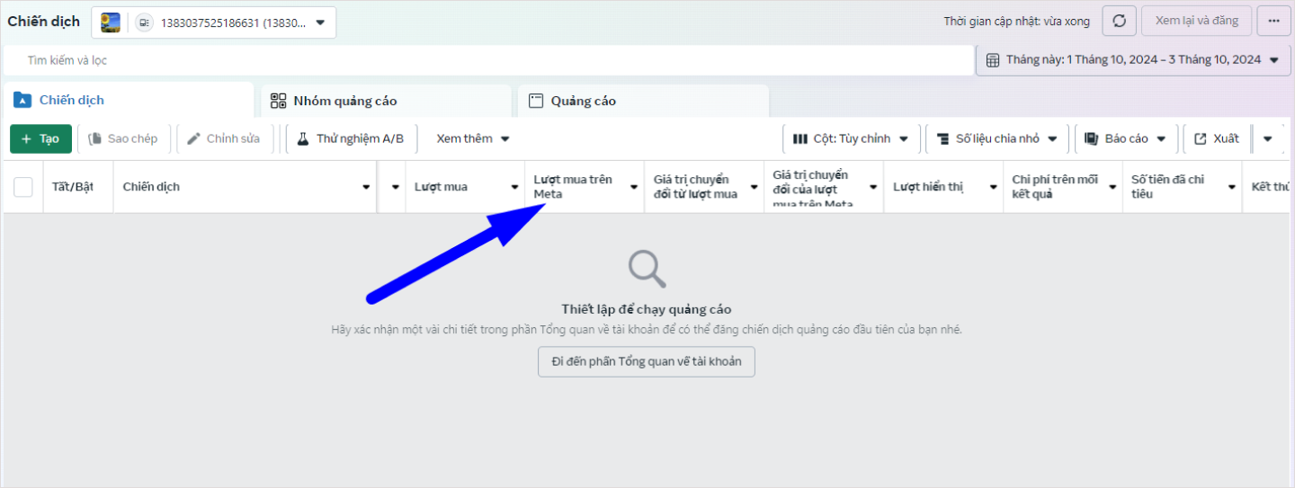 - Hai là vào trực tiếp chiến dịch quảng cáo, xem bảng báo cáo theo lượt mua