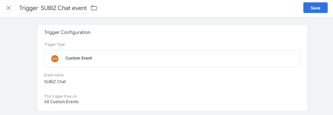 Ví dụ chọn Trigger khi muốn đo lường tất cả sự kiện trên cửa sổ chat Subiz
