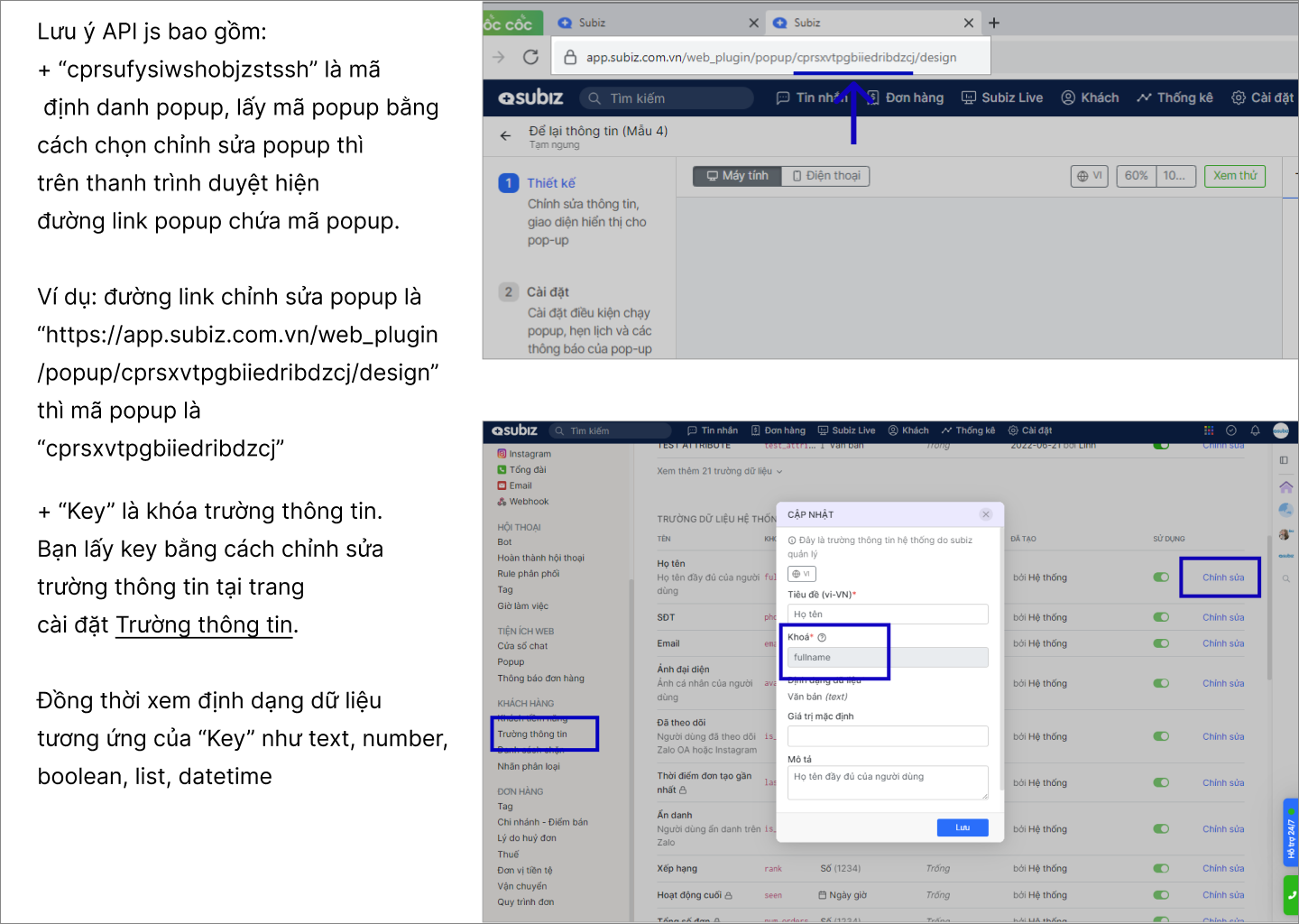 Bước 1: Kiểm tra trường thông tin khách trên Subiz