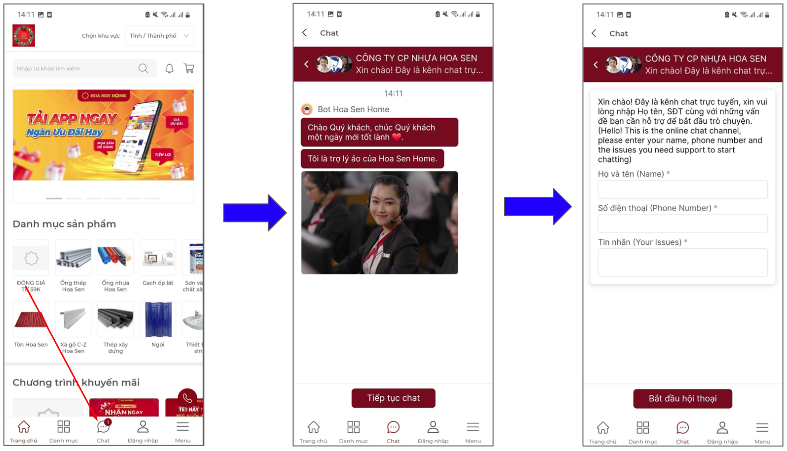 Ví dụ tích hợp Subiz trên app mobile của Hoa Sen Home