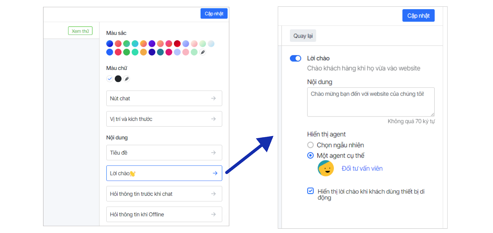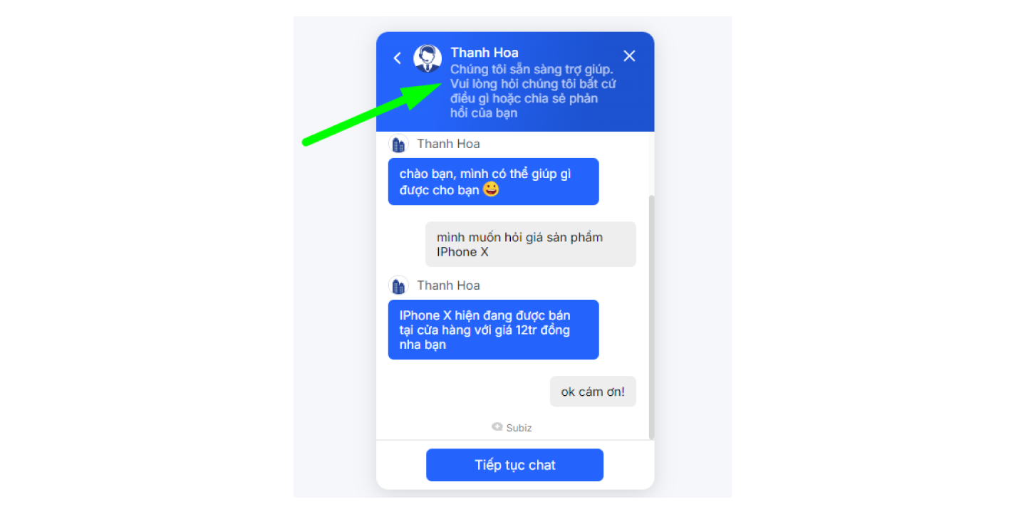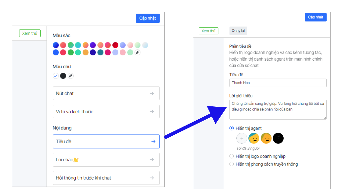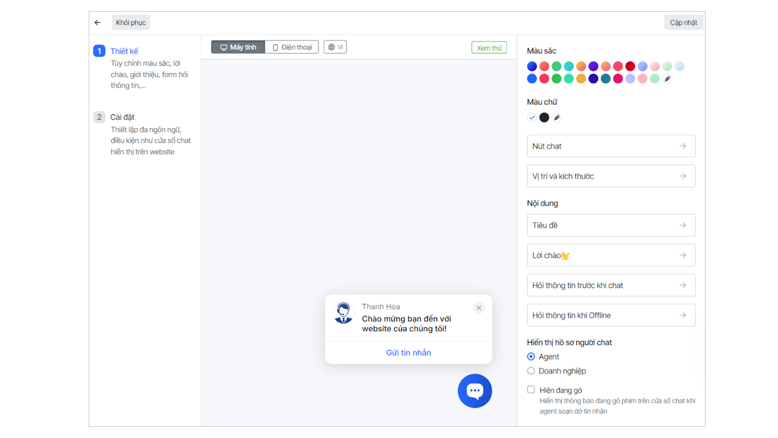 Bạn có thể tùy chỉnh các thông tin trên cửa sổ chat sao cho hòa hợp với hình ảnh chuyên nghiệp của website.