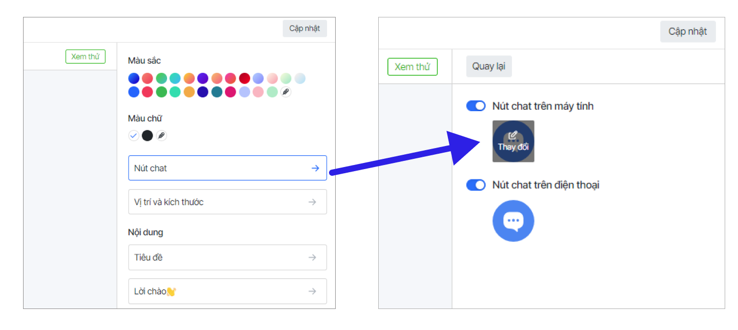 Nút chat kêu gọi khách nhắn tin có thể thay đổi là ảnh nhỏ hoặc ảnh lớn nhằm thu hút sự chú ý của khách hàng.