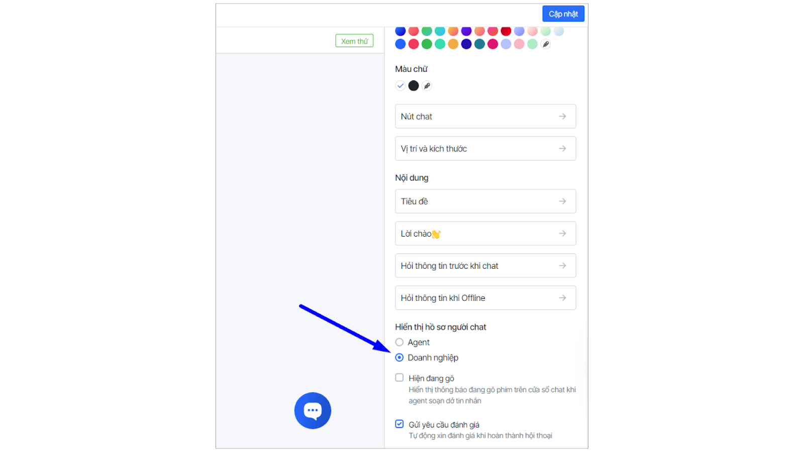 - Nhấp chọn Hiển thị hồ sơ người chat theo Doanh nghiệp