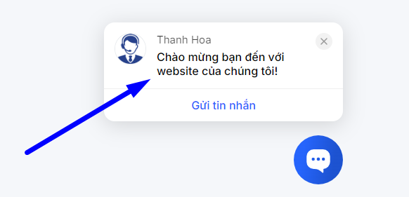 Lời chào hiển thị qua cửa sổ thu nhỏ, mời gọi khách nhắn tin tư vấn hỗ trợ.